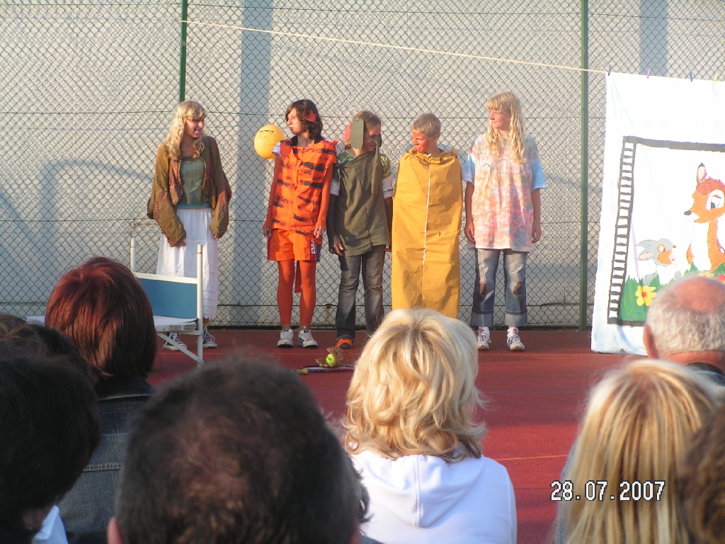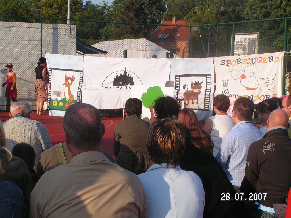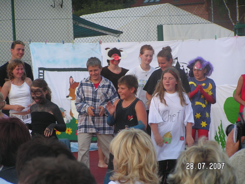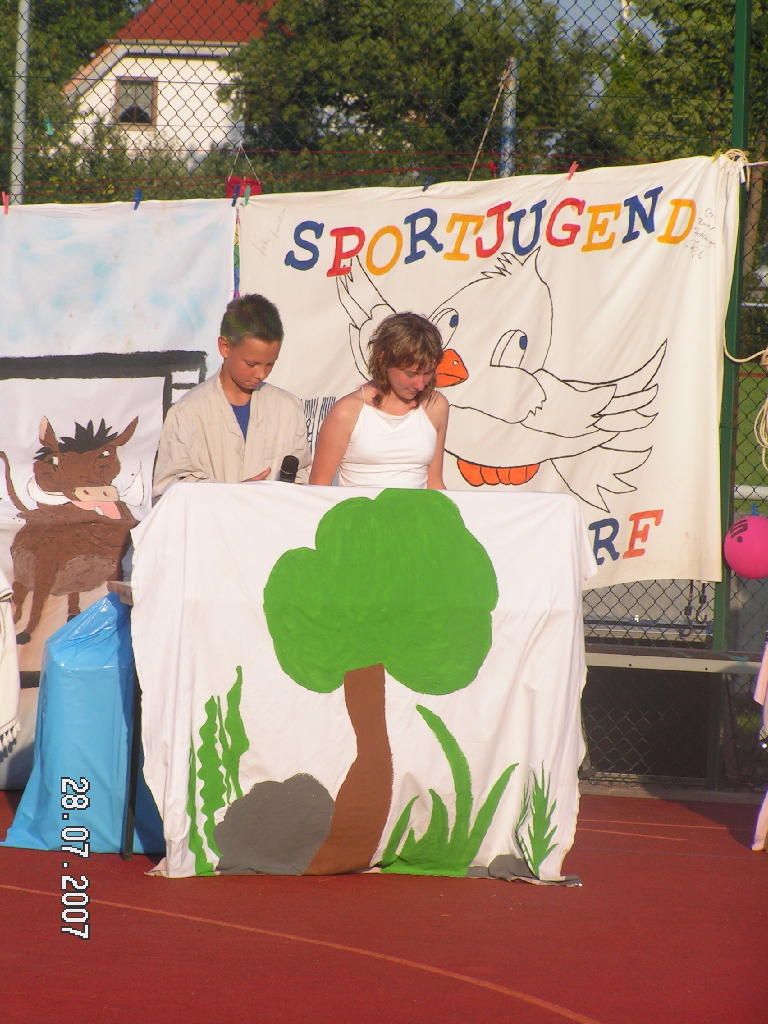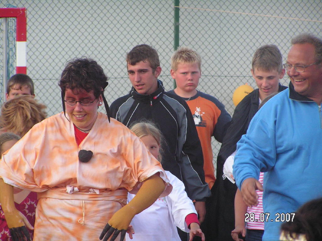 ![]() Gummibärenbande und Babydrachen sagen Danke für schöne Ferienwoche Seit 1998 veranstaltet die ZLG Atzendorf ein Sommercamp für etwa 60 Kinder aus dem Ort und der Umgebung, seit 2000 sogar zwei Durchgänge in jedem Jahr. Jeweils eine Woche Ferienspaß zu erschwinglichen Preisen ist dabei die Devise. In diesem Jahr ging am Sonntag das 17. Sommercamp zu Ende. Atzendorf.(Karl Seidel) 60 Kinder und 10 ehrenamtliche Betreuer mit einem Altersdurchschnitt von knapp 21 Jahren waren in sechs Blockhütten und drei Zelten auf dem Sportplatzgelände untergebracht. Die Verpflegung übernahm die Sportlerklause. Wie in fast jedem Jahr galt es wegen des Wetters das Programm flexibel zu gestalten. Beginn ist immer Sonntagnachmittag mit kennenlernen und Einzug in die Hütten und Zelte. Schon am Montag stand der erste Ausflug mit den Rädern zum Förderstedter Strandbad Albertinesee auf der Tagesordnung. Mit dem Film "Ich und das hässliche Entlein" von Walt Disney endete dieser Tag. Eine Busfahrt führte zum Zoo nach Leipzig. Bei gutem Wetter nutzte man anschließend noch die Sommerrodelbahn auf dem Petersberg bei Halle. Alle durften zwei Mal fahren und waren begeistert. Am Donnerstag wurde die zwei Tage vorher wegen schlechten Wetters ' ausgefallene ' Fahrt zum Löderburger See nachgeholt. Auf der Fahrt gab es einige Stürze und Pannen. Dort angekommen, versuchten sich 15 Kinder beim Wasserski. Der Jüngste dabei, Johannes Dietz, aus Förderstedt, war sieben Jahre alt, ebenso wie das jüngste Mädchen; Anika Butscher. Nach dem stärkenden Mittagessen wurde Kanu gefahren mit Booten vom "Bodetramp". Die Rückfahrt wurde für die Radfahrer mit Fahrradhelm als Radrennen gestaltet. Eine weitere geplante Fahrt zum Albertinesee fiel dem ,schlechten Wetter zum Opfer. In den freien Stunden und am verregneten Sonnabend wurde der Abschlussabend vorbereitet. Das Thema waren die Gestalten von Walt Disney. Im Vorfeld wurden Kulissen angefertigt, Masken ausgeschnitten und bemalt, Kleidungsstücke angefertigt, Texte gelernt und Szenen geprobt. Daneben herrschte ein buntes ungezwungenes Lagerleben, bei dem sich alle wohlfühlten. Die Generalprobe am Nachmittag fiel zufriedenstellend aus. Der Regen hatte auch aufgehört. So konnte am Abend das Spektakel beginnen. Inzwischen hatten um die 150 erwartungsfrohe Zuschauer Platz genommen. Die Darsteller hatten sich in die Disney-Figuren verwandelt. Mit tierischem Geschrei begann das Programm. Zuerst hatte die Gummibärenbande ihren Auftritt. Die Geschichten mit dem Babydrachen, Pinoccio, "Disneys große Pause" und die Geschichte vom Dschungelkind Mogli, das jahrelang bei den Tieren gelebt hatte, waren weitere Szenen in dem bunten Programm. Mit der Kurzfassung des allerdings nicht von Walt Disney stammenden Märchen von "Schneewittchen" fand die einstündige Rundreise durch das Land der Disney Figuren ihren Abschluss. Viel Beifall gab es von den Zuschauern. Beim Abschlusstanz musste Uwe Grenzau, guter Geist und Mädchen für alles im Sommercamp, mitwirken. Sein klagendes "Ich hab' ja gar nicht geübt' half ihm dabei nicht. Zum Abschluss bedankte sich Uwe Grenzau beim Jugendamt Schönebeck für die Zuwendung, mit der der Teilnehmerpreis niedrig gehalten werden konnte, bei allen ehrenamtlichen Helfern, besonders dem Team der Sportlerklause, und allen, die das Sommercamp unterstützten sowie bei den Eltern, die ihre Kinder für eine Woche der Sportjugend anvertraut hatten. Da scherzte ein Kind spontan aus der Runde: "Das werde ich euch nie verzeihen! " Der stimmungsvolle Abend wurde am Lagerfeuer noch bis spät in die Nacht fortgesetzt.
