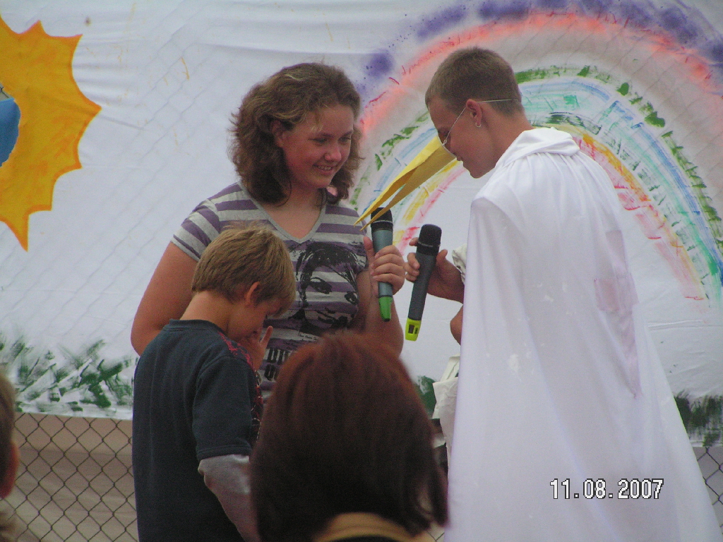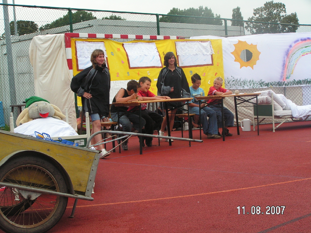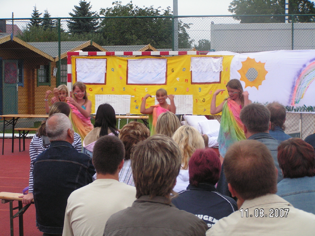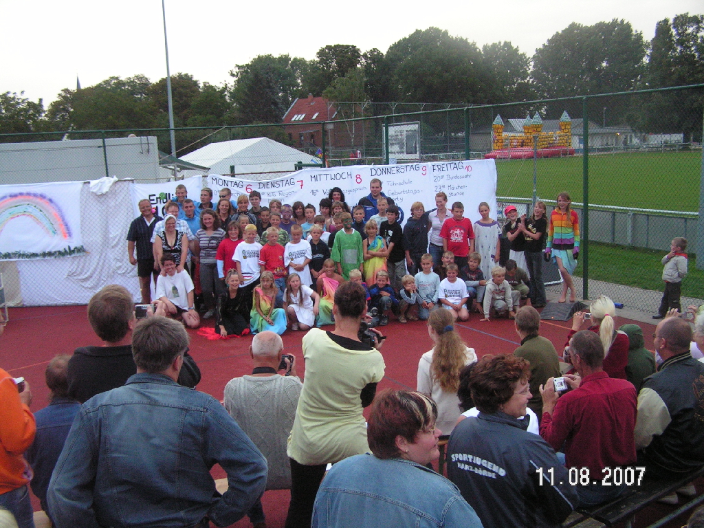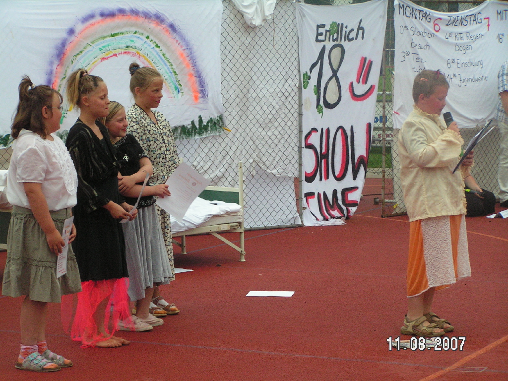 ![]() Neptuntaufe am Albertinesee und bewegender Abschlussabend Auch der zweite Durchgang des Sommercamps in diesem Jahr brachte 60 Kindern eine Woche erlebnisreiche Ferien. Wieder gab es auch viel Spaß im Camp und die Kinder fühlten sich wohl. Der Abschlussabend unter dem Motto "Endlich 18" sollte auf heitere Weise sowohl auf Stationen der kindlichen Entwicklung als auch das 18. Camp im zehnten Jahr hinweisen. Aber es gilt auch einmal die Arbeit der ehrenamtlichen Betreuer zu würdigen. Atzendorf.(Karl Seidel) Die Busfahrt am Mittwoch führte in den Harz zur Western-Stadt Pullmann-City. Die Kinder waren begeistert von der Atmosphäre. Auf der Rückfahrt wurde dann noch beim Abenteuerspielplatz am Concordiasee Halt gemacht. Zweimal fuhren alle mit den Rädern nach Förderstedt zum Albertinesee. Neben Badespaß stand auch die Neptuntaufe auf dem Programm. Der Gott der Meere kam am Freitag mit seinem Gefolge an Land. Die Häscher ergriffen die Täuflinge, seiften sie mit Sahne kräftig ein, rasierten sie, gaben ihnen ein unbeschreibliches Gesöff zu trinken und vertrauten sie schließlich dem kühlen Nass an. Zuletzt gab es noch Taufnamen und Urkunde. Besonderer Höhepunkt mit viel Gelächter und Beifall war die Taufe von Uwe Grenzau auf den Namen "Schnarchender Containerkrebs". Dabei , gaben sich alle Beteiligten besondere Mühe. Aber Uwe nahms gelassen, wechselte seine Kleidung und .bugsierte die ganze Truppe zum Mittagessen. Erbsensuppe mit Würstchen gab es, nicht jedermanns Geschmack. Aber da musste man durch. Bei der Fahrt zum Löderburger See war leider ein Unfall zu verzeichnen. Ein Kind brach sich beim Spielen den Arm, wurde ärztlich versorgt und operiert,. Hoffentlich wird alles wieder gut. Dieses Mal waren die Kinder mutiger. 17 wagten sich an die Wasserskianlage. Auch die Kanutour mit den Booten von Bodetramp wurde nicht ausgelassen, fand allerdings nicht auf der Bode statt. Damit das 18. Sommercamp in Erinnerung bleibt, war Kathrin Döbbel mit ihrem Camcorder überall dabei. Sie dreht einen Film, der zur Weihnachtsfeier uraufgeführt werden soll. Gleichzeitig soll er die Arbeit der Atzendorfer Sportjugend dokumentieren. Hier ,sind wir schon bei den ehrenamtlichen Betreuern, die mit Engagement bei der Sache waren und deren Arbeit hier gewürdigt werden soll. Aber auch die Sportjugend des ehemaligen Kreises Aschersleben-Staßfurt hat das Camp unterstützt und bekommt dafür ein herzliches Dankeschön. Nun bleibt nur noch die Schilderung des Abschlussabends übrig. Der stand unter dem Motto "Endlich 18"- und sollte gleichzeitig auf das 18. Sommercamp hinweisen. Er begann mit der beziehungsreichen Frage: "Wo kommen die Kinder wirklich her ?" Die Antwort gab hier der Klapperstorch. Es folgten die Teletubbies und ein kleiner Tanz, mit denen die Kindheit dargestellt, wurde. Während der Schulzeitwar das erste Klassenfoto ein herausragender Moment. Jugendweihe hieß das nächste Thema. In der "Rede" dazu wurden die Wünsche der Kinder aufgezählt, darunter der aktuelle, dass die Butter nicht teurer mögen werde. Eine Fahrschulstunde, das Vorstellungsgespräch bei Schwiegermutter und die Bundeswehr waren weitere Stationen eines bewegten Jugendlebens. Zum Abschluss wurde eine kleine Märchenstunde - sehr frei nach "Rotkäppchen" - präsentiert. Es war auf jeden Fall ein unterhaltsamer Rückblick, bei dem die Darsteller vor Lachen manchmal selbst nicht weiter kamen. Prasselnder Beifall der Zuschauer war der verdiente Lohn. Bevor es ans Abschiednehmen ging, wurden noch Justin Lepka - Beste im Laserschießen - und die fleißigsten Teilnehmer am Frühsport geehrt. Uwe Grenzau bekam von jedem der 60 Kinder ein Eis geschenkt und wurde vom Vorstand aus Anlass des zehnjährigen Bestehens des Atzendorfer Sommerlagers mit einer Flasche Sekt und einer Geburtstagstorte für sein tolles Engagement geehrt. Mit einem Tanz aller Teilnehmer und einem Gruppenbild von Kindern und Betreuern endete dieser Abschlussabend, der bestimmt noch lange in der Erinnerung der Teilnehmer bleiben wird. Alle freuen sich schon auf das 19. und 20. Sommercamp im nächsten Jahr. |